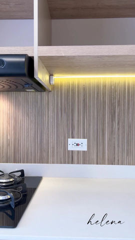 Tanto cocina como baño cuentan con iluminación Led indirecta, que crea un ambiente sofisticado y les brinda carácter. El baño posee un diseño que contrasta los tonos claros del apartamento con accesorios en negro mate, puertas en vidrio templado y esta 100% enchapado en tres formatos que le dan un carácter especial. Todo el piso fue cubierto con un piso en SPC, muy resistente. El diseño fue realizado por la firma Ob Atelier, y cómo es característico en sus proyectos el estilo Japandí y una iluminación bien pensada, fueron ejes en la construcción del interiorismo de este apartamento.