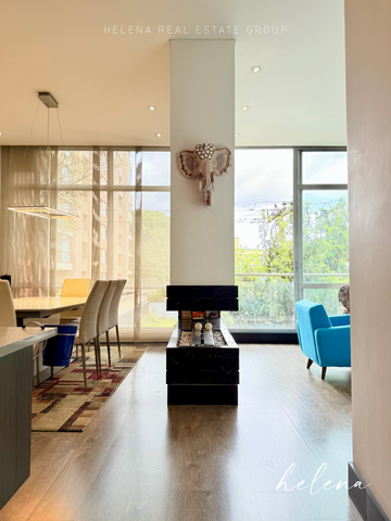 Ubicado en el piso 2, el apartamento cuenta con 118m² de área distribuidos en una amplia zona social, dividida por una chimenea, con cocina abierta tipo americano, sala y comedor con ventanas termoacústicas, baño social, zona de ropas, una habitación principal con walking closet y baño (con acceso directo a la terraza), y una habitación auxiliar con baño privado (con acceso directo a la terraza). Su diseño resalta por la altura libre de 3m al techo, una terraza privada de 45m² con zona de BBQ y detalles de lujo como estufa de inducción, horno y lavaplatos automático a vapor.
