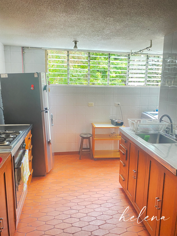 La cocina es amplia y lleva a la zona de servicios, compuesta por un patio de ropas y una habitación de servicio con baño privado. La zona privada esta compuesta por 3 habitaciones, a las que se accede por un corredor con un baño compartido. La habitación principal cuenta con iluminación natural y un baño privado.